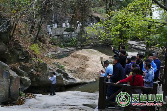 選擇天柱山,理由一串。新春,隨著《相約1998》的歌聲,相約悠悠,歲月悠悠。經(jīng)過三載的齊心協(xié)力的創(chuàng)建,單位終獲桂冠,一場(chǎng)盛大的歡喜之后,隨著而來就是這是外出獎(jiǎng)勵(lì)。一個(gè)大巴,近50人的團(tuán),大巴車中不知裝滿了多少欣喜、歡喜甚至驚喜。天柱山的了解,多是碎片化的,偶讀余秋雨的《寂寞天柱山》也是驚鴻一現(xiàn),思緒多在患得患失中飄逸。正如我長(zhǎng)期琢磨的一個(gè)問題,如果當(dāng)年李白能久久在潛山尋景,在多些日月在天柱山下靜修,或許那首詩就是:相看兩不厭,唯有天柱山了,換成這般地贊嘆,必定是游園驚夢(mèng),姹紫嫣紅了,也不必會(huì)有“寂寞天柱山”之感慨了。而恰恰相反的是李白把天柱山當(dāng)“家”了,來了句:“待吾還丹成,投跡歸此地?!弊屘熘降攘撕脦啄?。